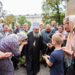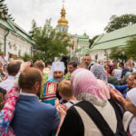 Перед вечірнім богослужінням у воріт Лаври Предстоятеля зустріла паства та собор священнослужителів.