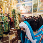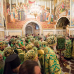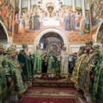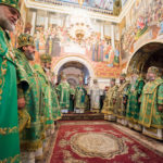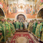 Його Блаженству співслужив сонм архієреїв: митрополити, архієпископи та єпископи Української Православної Церкви, а також братія обителі у священному сані.