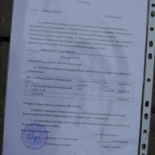 Фотометр фотоелектричний КФК-3-01 вартістю 51 тис. грн., що є незамінним помічником під час лабораторних досліджень, був придбаний на кошти парафіян і духовенства. Ці кошти були зібрані в рамках багаторічного суспільно-церковного благодійного проекту Запорізької єпархії «Любов милосердствує».