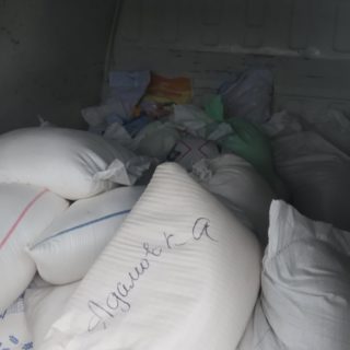 Всього було доставлено 27 тонн гуманітарного вантажу, в тому числі 10 тонн різних круп, цукру, борошна, 2 тонни макаронних виробів, 1,5 тонни рослинної олії, 5 тонн консервації, а також картопля, овочі, фрукти. Більш як 1 тонни доставлено засобів гігієни й побутової хімії.