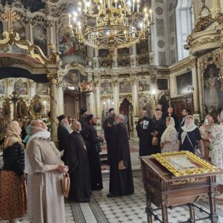 Митрополита Варсонофія та паломників зустрів єпископ Сремський Василій (Вадіч). Архієреї поклонились місцевим святиням та обмінялись подарунками.