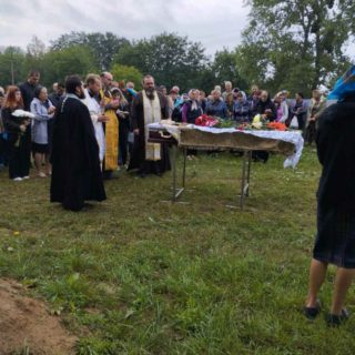Після поховання воїна отець Василій передав слова співчуття митрополита Поліського і Сарненського Анатолія рідним та близьким убієнного Героя.