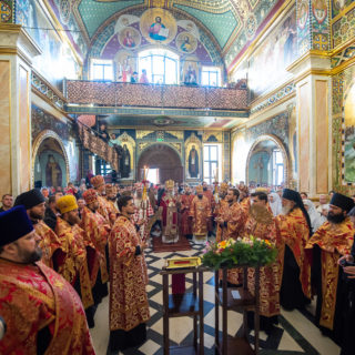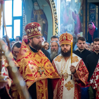 Предстоятелю співслужили керуючий справами УПЦ митрополит Бориспільський і Броварський Антоній, єпископ Ірпінський Лавр, єпископ Бородянський Марк, духовенство обителі та гості у священному сані.