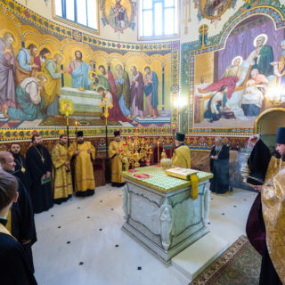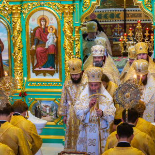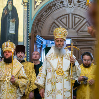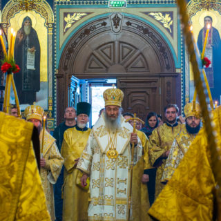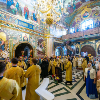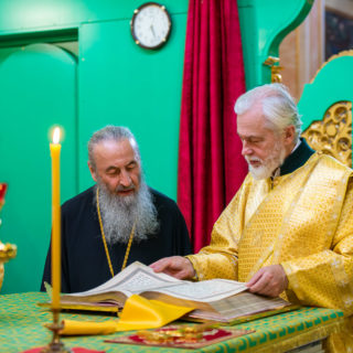 Предстоятелю співслужили вікарії Київської Митрополії єпископ Ірпінський Лавр, єпископ Бородянський Марк та духовенство обителі.