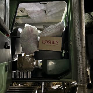 Перед відправкою на передову автомобіль завантажили продуктами харчування довготривалого зберігання, які пожертвували для воїнів сестри Спасо-Преображенського жіночого монастиря на чолі з ігуменею Любов’ю (Піхур).