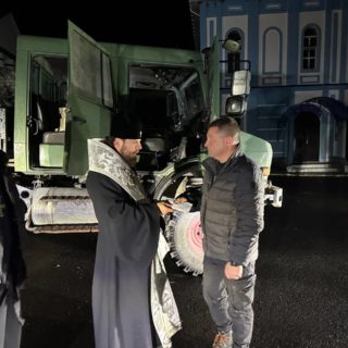 Також архієпископ Віктор передав волонтерам, які транспортуватимуть автомобіль на передову, зібрані вірянами Хмельницької єпархії 20 000 гривень для потреб ЗСУ на заправку топливом транспортного засобу.
