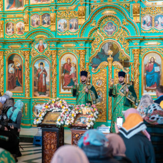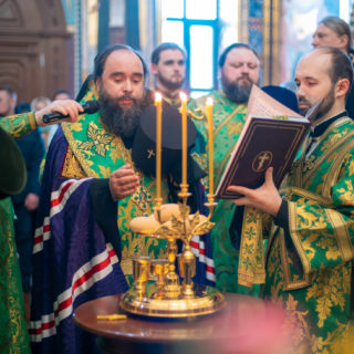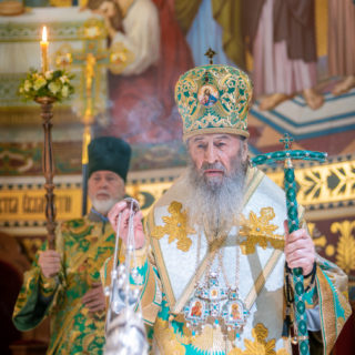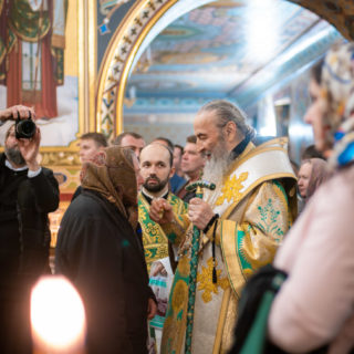 Предстоятелю співслужили голова Відділу зовнішніх церковних зв’язків УПЦ митрополит Чернівецький і Буковинський Мелетій, керуючий справами УПЦ митрополит Бориспільський і Броварський Антоній, архієреї Української Православної Церкви, гості у священному сані та духовенство обителі.