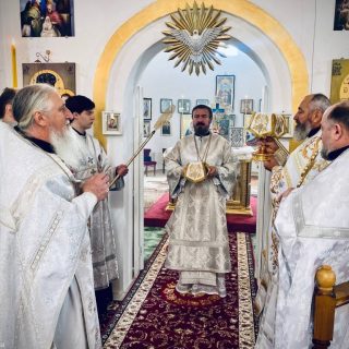 Після завершення Літургії владика Онуфрій привітав настоятеля храму, священнослужителів і парафіян зі святом, звернувся до них з архіпастирським словом і закликав на всіх Боже благословення.