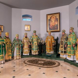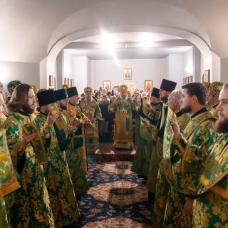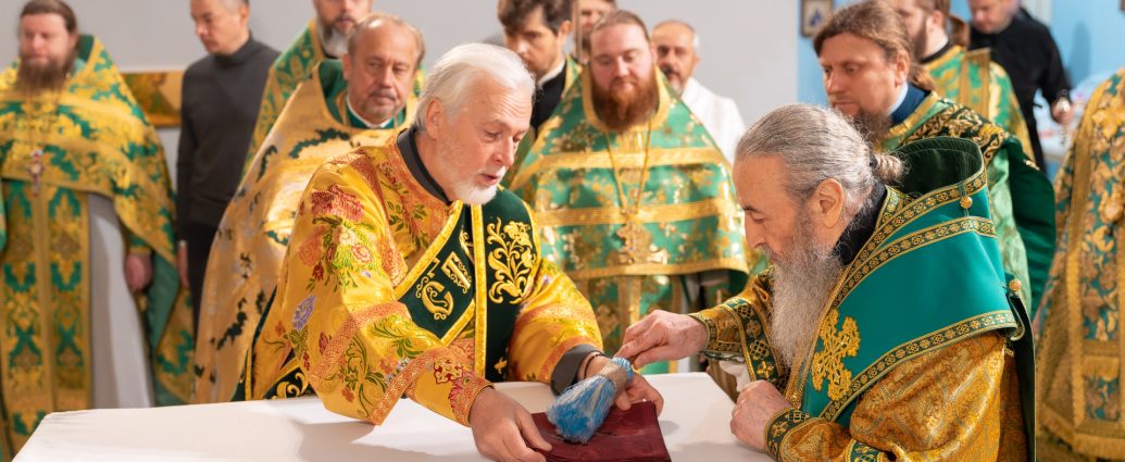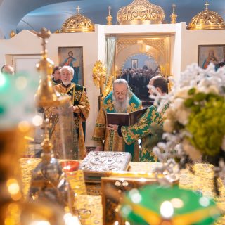 Предстоятелю співслужили керуючий справами УПЦ митрополит Бориспільський і Броварський Антоній, митрополит Полтавський і Миргородський Филип, архієпископ Вишневський Спиридон, архієпископ Ірпінський Лавр, архієпископ Бородянський Марк, духовенство собору та гості у священному сані.
