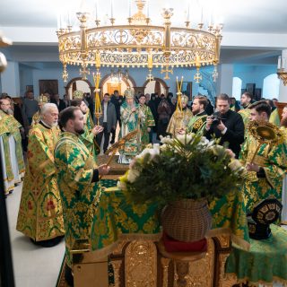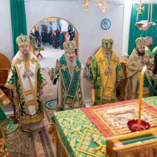 Предстоятелю співслужили керуючий справами УПЦ митрополит Бориспільський і Броварський Антоній, архієпископ Яготинський Серафим, архієпископ Ірпінський Лавр, архієпископ Бородянський Марк та духовенство обителі.