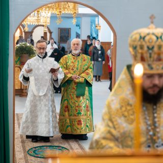 За Літургією помолились про мир на нашій землі, благословення Господнє українському народу, про позбавлення від ворога та за воїнів-захисників.
