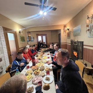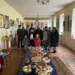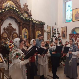 Настоятель Георгіївського храму архімандрит Нифонт (Омельчук) і парафіяни влаштували вечерю в церковній хаті. Стіл було накрито домашніми стравами, з любов’ю приготовленими і принесеними вірянами. Хлопці колядували, віншували і дарували радість та настрій свята.
