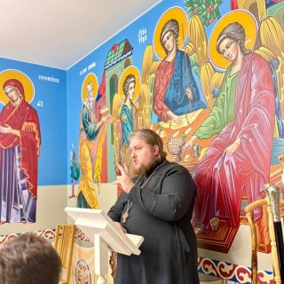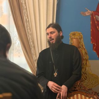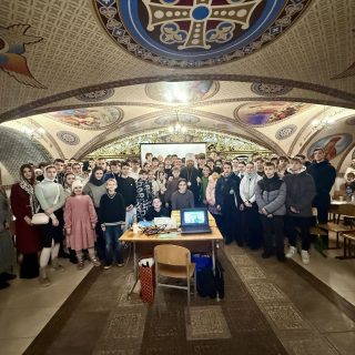В основі виступу отця Ростислава була тема: «Як залишитися християнином під час війни?». Далі спілкування продовжилося у форматі питання-відповіді.