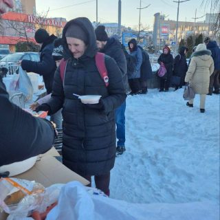 Водночас у Києві волонтери Синодального відділу з соціально-гуманітарних питань УПЦ щоп’ятниці проводять благодійні обіди для нужденних. Цього разу біля залізничного вокзалу гарячу трапезу отримали близько сотні осіб — серед них безхатьки, переселенці, малозабезпечені родини, люди з інвалідністю та пенсіонери.