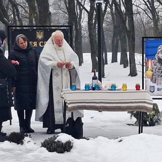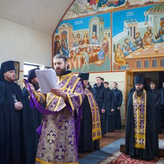 В Академічному храмі на честь преподобного Іоанна Дамаскина Київських духовних шкіл у Голосіївському монастирі було звершено молебень за українських військових та мир в Україні.