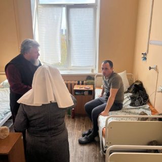 У свою чергу, настоятель храму протоієрей Геннадій Батенко передав пацієнтам лікарні двісті пасок і привітання зі Світлим Христовим Воскресінням.